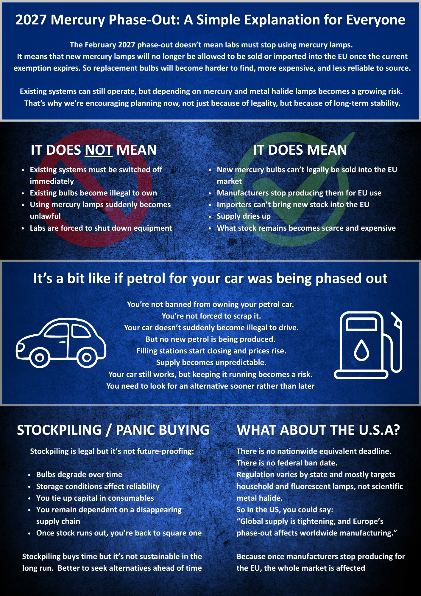By 24 February 2027, exemptions that have allowed mercury in metal halide lamps under international hazardous-substances law, like the EU’s RoHS regulations and equivalent UK legislation, will expire. After that date: