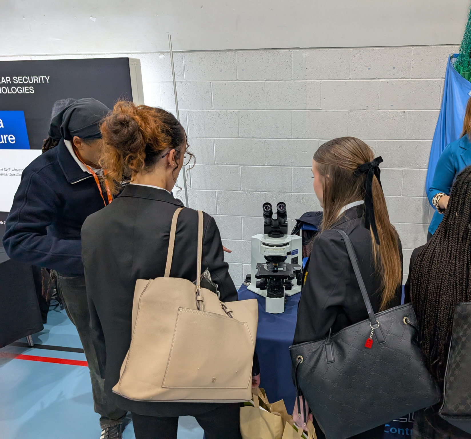 We brought along one of our fluorescence microscope demonstrations, which always looks a bit like magic until you realise it’s just physics doing its thing. Students had the chance to see how light helps scientists explore the invisible world inside cells and how those discoveries can lead to advances in medicine, biology, and beyond.