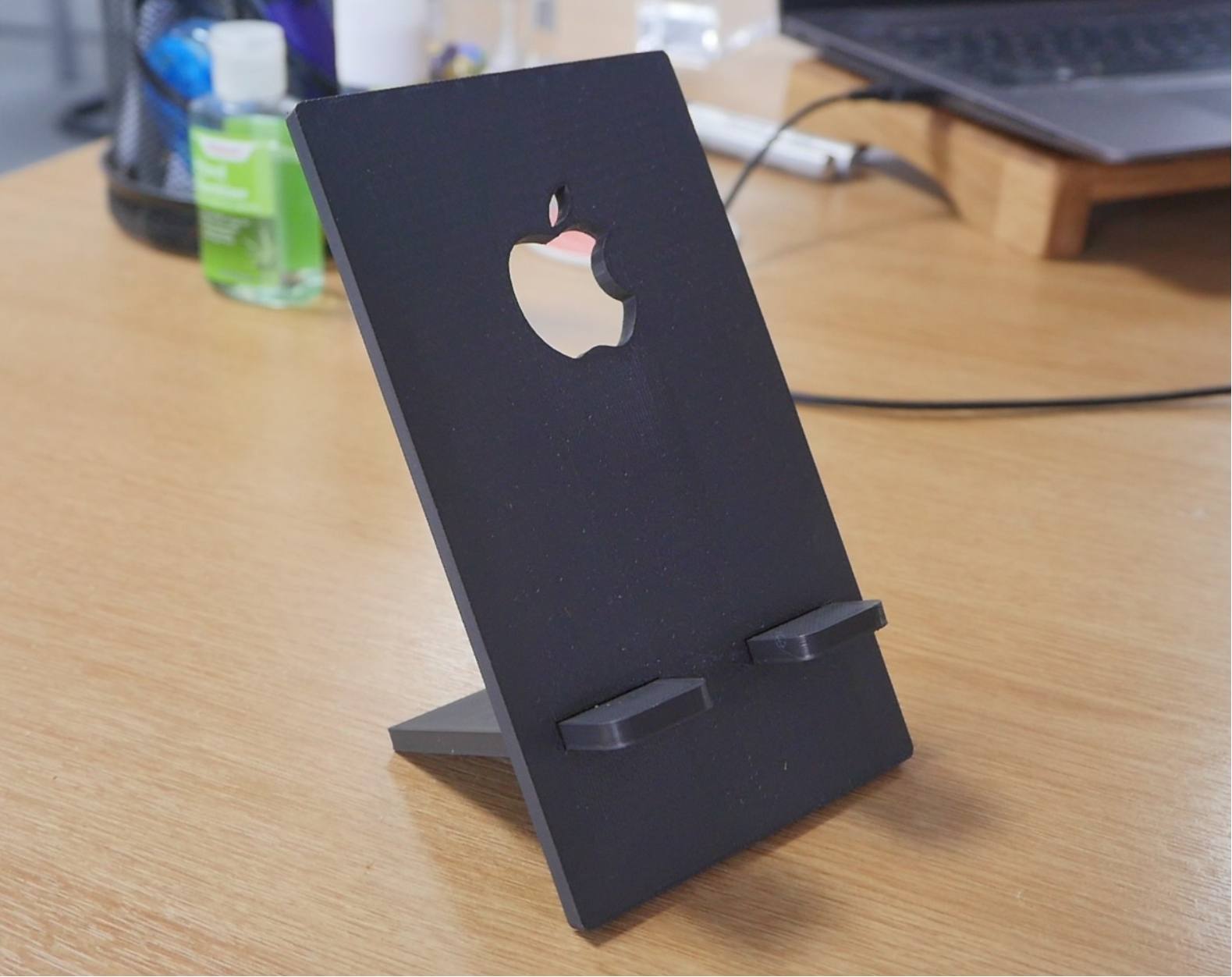 With the help of Engineering and Production, he was able to design and then 3D print his phone holder.